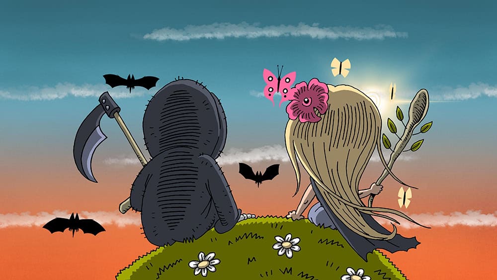 Im Rahmen unseres Präventionsangebotes entstanden auch die vier ersten kurzweiligen AnimaDok-Filme „Herr Tod und Frau Leben“. Produziert von Sandra Strauß und unter der Regie von Schwarwel von Glücklicher Montag beantworten diese Filme mit Interviews und Animationen drängende Fragen wie „Was tun im Todesfall?“ oder „Wie funktioniert eine Feuerbestattung?“.
