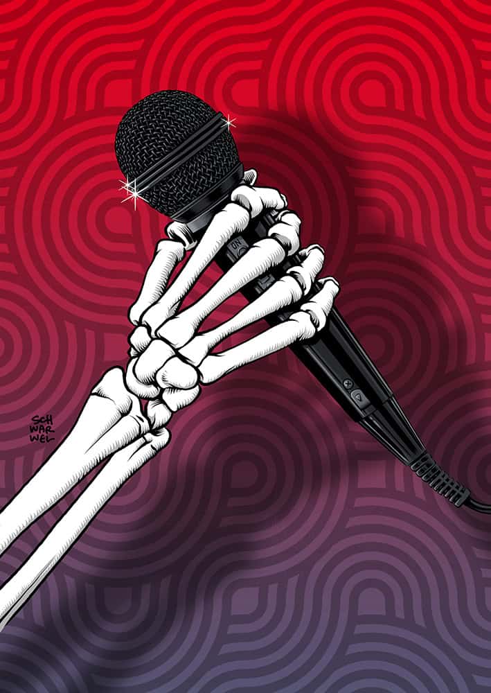 Katja: Die meisten Texte, so würde ich behaupten, sind autobiografischen Ursprungs. Im Poetry Slam Format gibt es eine Insider-Rubrik, die sich „Erpressungstexte“ schimpft. Es ist verpönt, Texte vorzutragen, in denen man seiner Gefühlswelt so stark moralischen Ausdruck verleiht oder mit erhobenen Zeigefinger agiert, dass es für die Jury unausweichlich ist, eine schlechte Punktzahl zu geben. In so eine Schublade fallen manchmal auch Texte über den Tod. Hier habe ich auf Bühnen zahlreiche Slammer:innen auf Poetry Slams erlebt, die einen Text einem verstorbenen Familienmitglied gewidmet haben. Beim DeathSlam finden diese Texte einen sehr guten Platz. Einen Platz zwischen einem autobiografischen Suizidgedankentext und einer ironischen Abhandlung von Arten „das Zeitliche zu segnen“. Viele Slammer*innen beleuchten das Thema philosophisch, andere berichten von Erlebten und wiederum andere bauen sich Utopien auf. Die Vielfalt ist hier endlos.
