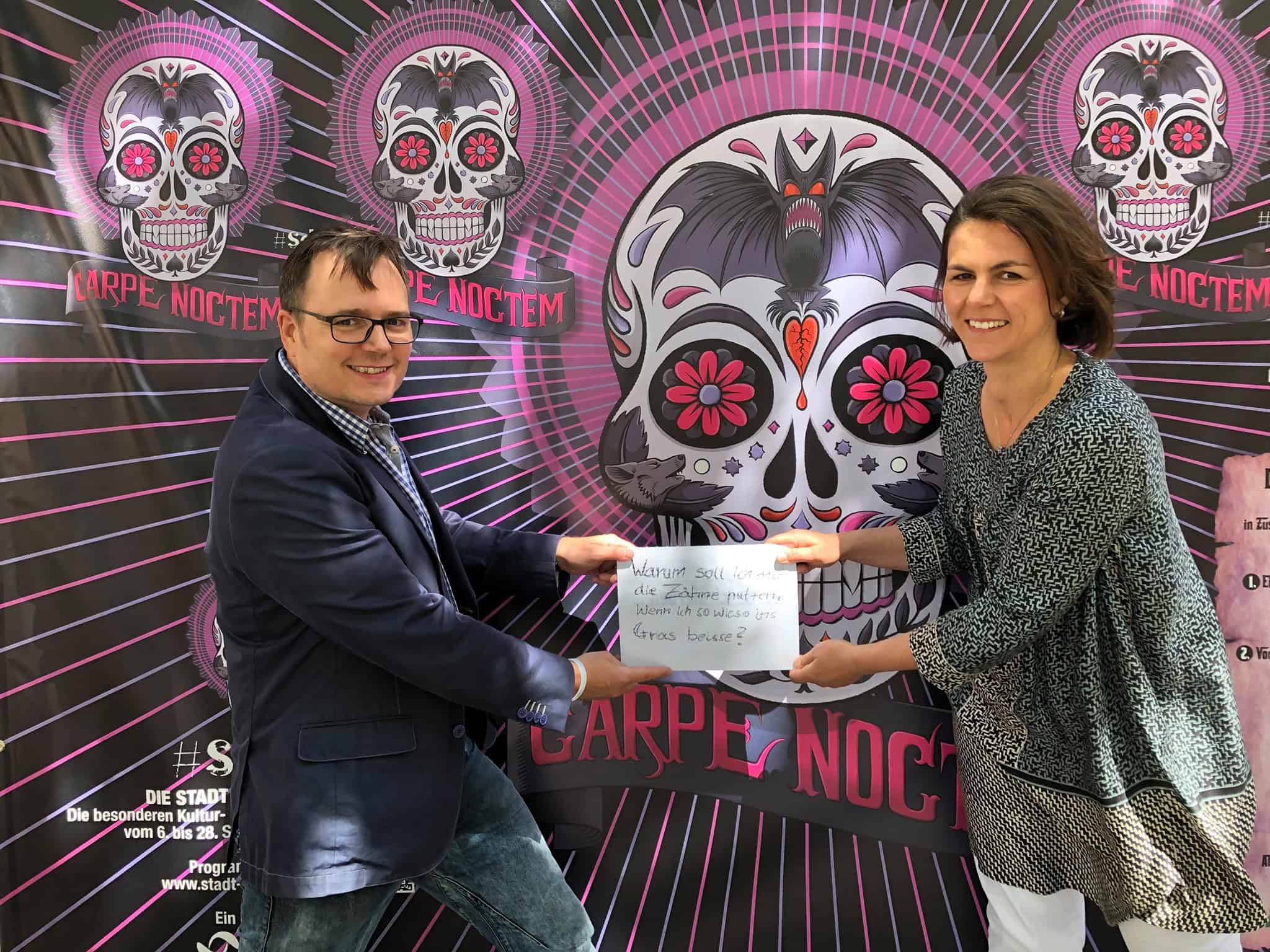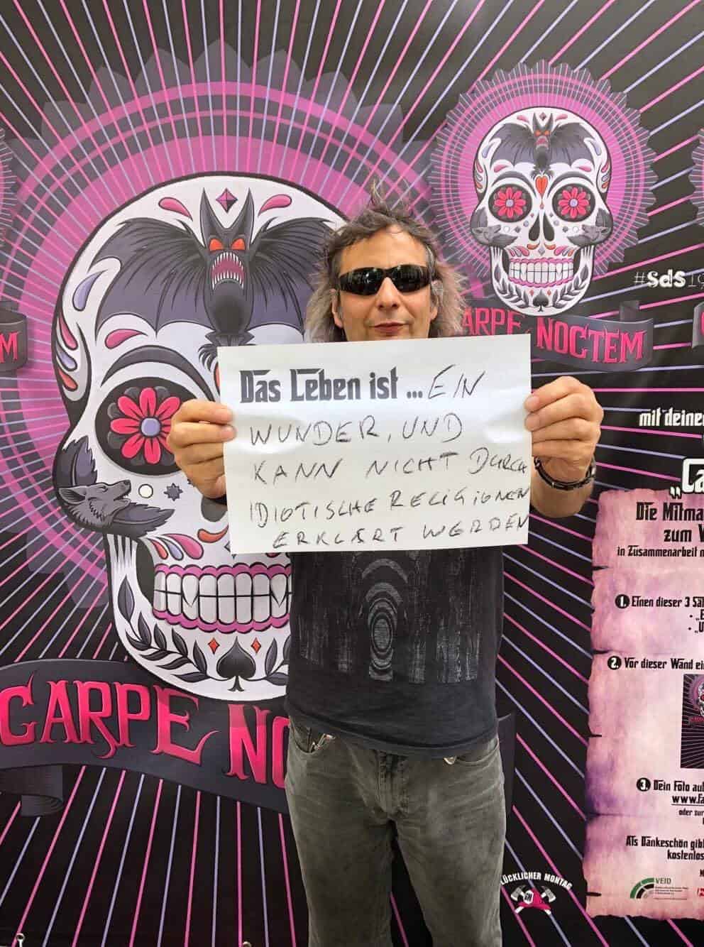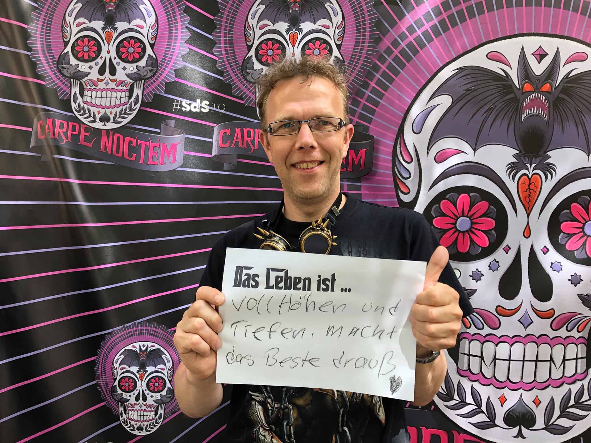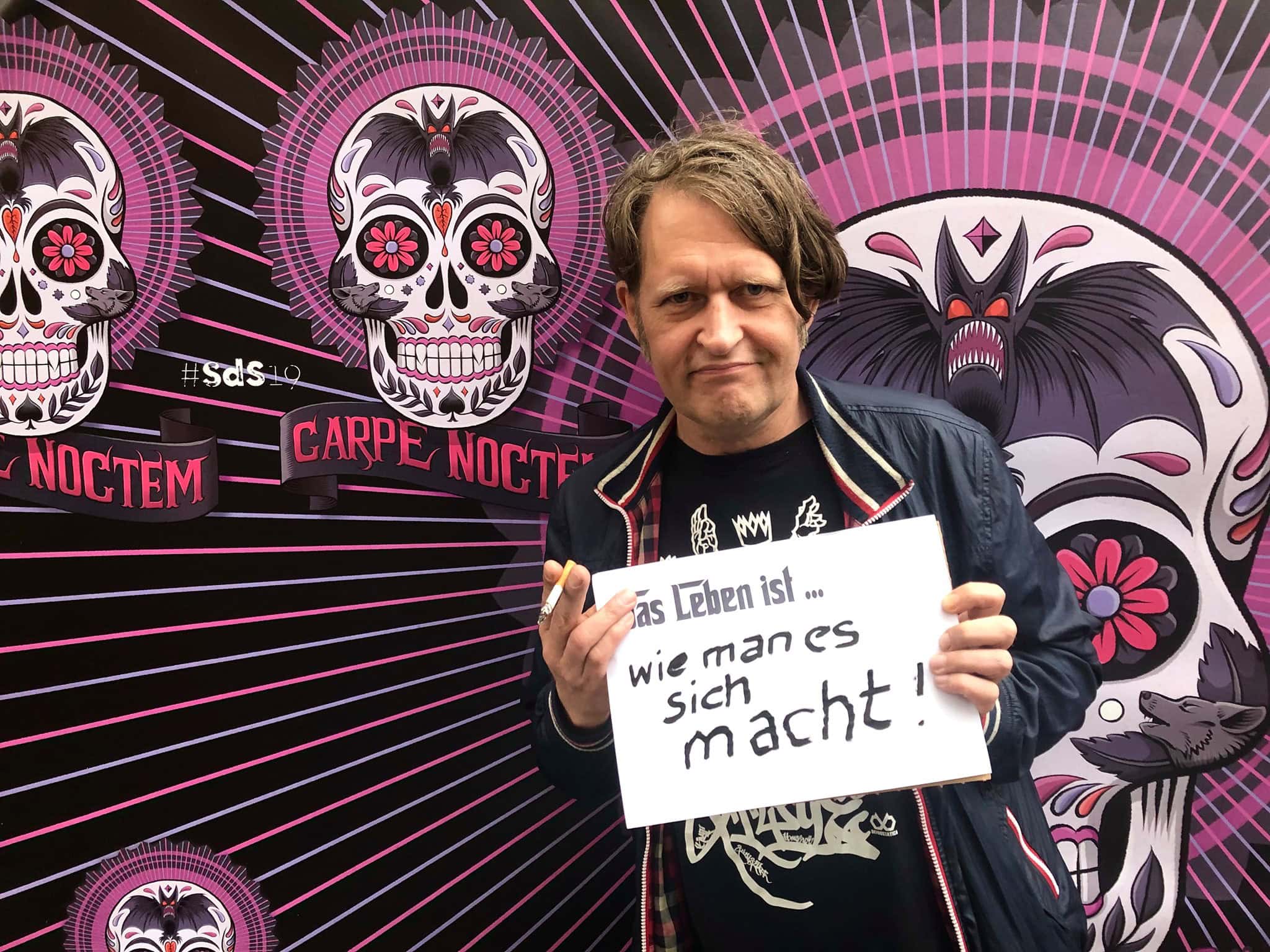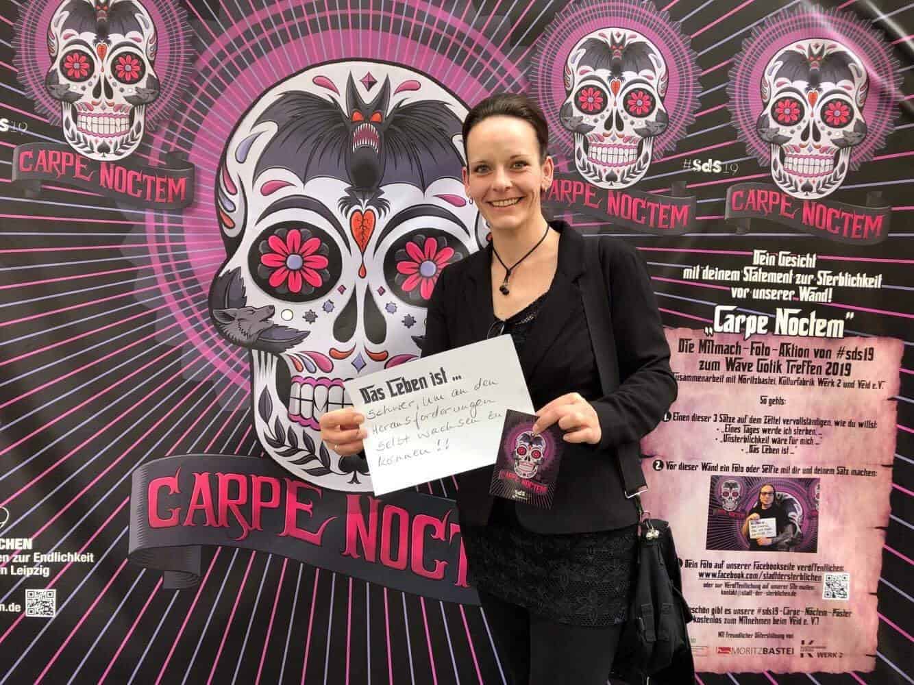 Zu Pfingsten stand erstmal das WGT – Wave Gotik Treffen vor der Tür, bei dem wir unbedingt mit der Präsentation der #sds19 dabei sein wollten. Also konzipierten wir kurzerhand eine Live-Aktion, die im Veid e. V., auf der Moritzbastei und im Werk 2 stattfand. Wir spannten jeweils ein großes Banner und luden Menschen ein, sich davor zu präsentieren – mit einem Statement und ergänzenden Satz zu: