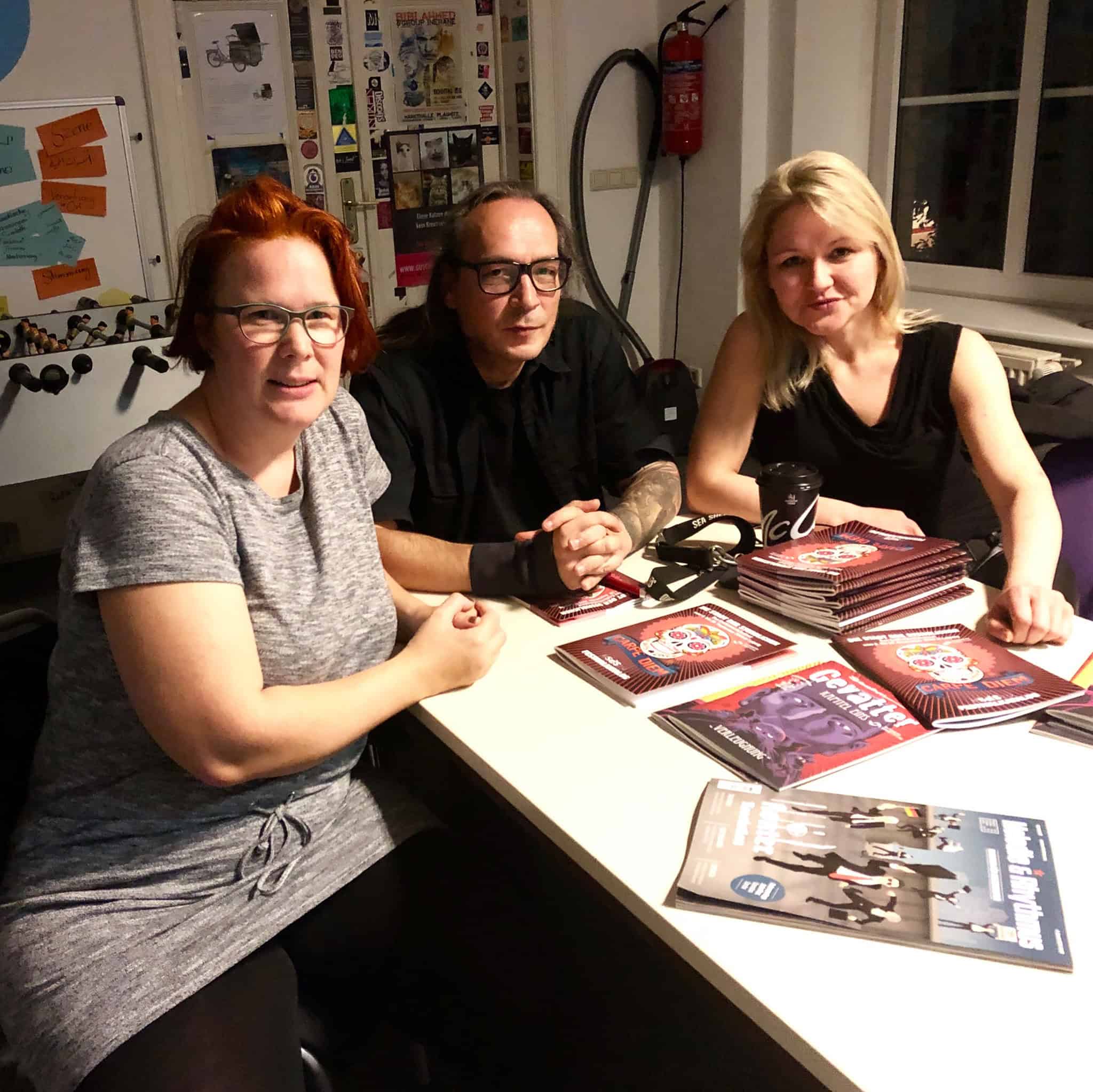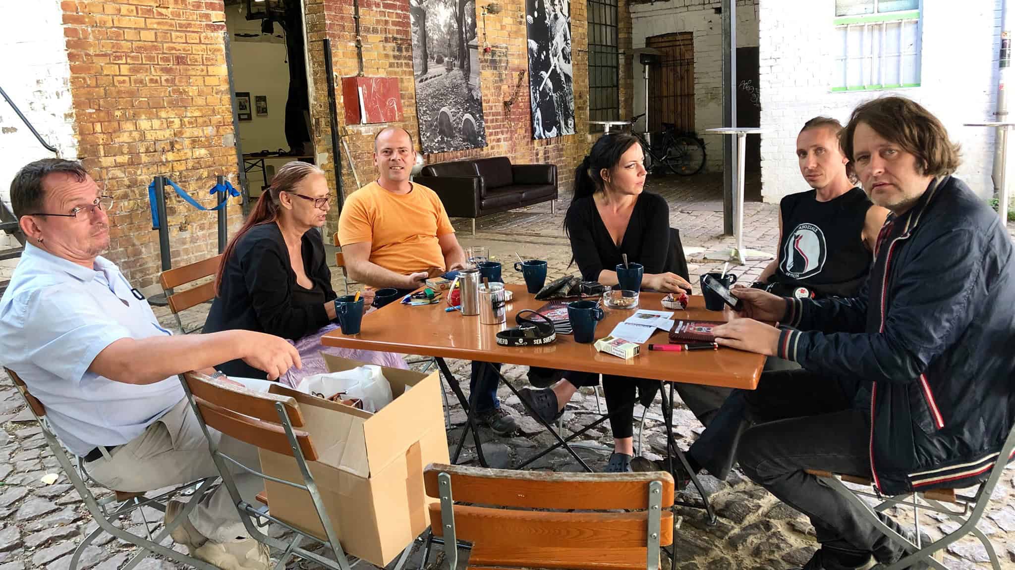 Und sofort ging es los. Zusammen entwickelten wir Ideen und das Konzept und trafen uns mit weiteren Mitorganisator:innen. Wie unsere nächsten Wochen und Monate dabei ebenso aussahen – neben viel intensivem Mail-Verkehr: Wir verbrachten unheimlich viel Zeit mit lieben Menschen (= #sds19-Beteiligten) in Cafés und den zukünftigen #sds19-Veranstaltungsorten: in der Moritzbastei, im Krystallpalast Varieté, in der Kulturfabrik Werk 2, im Zeitgeschichtlichen Forum Leipzig, im Anatomie-Saal des Uniklinikums Leipzig, in den Produktionsbüros von SOKO Leipzig, in der Galerie KUB, auf der Wiese Zittergras im Friedenspark, in der Leipziger Spinnerei sowie im Gartenhaus Osmünde (= dem „Headquarter“) – diese Liste ließe sich endlos fortsetzen.