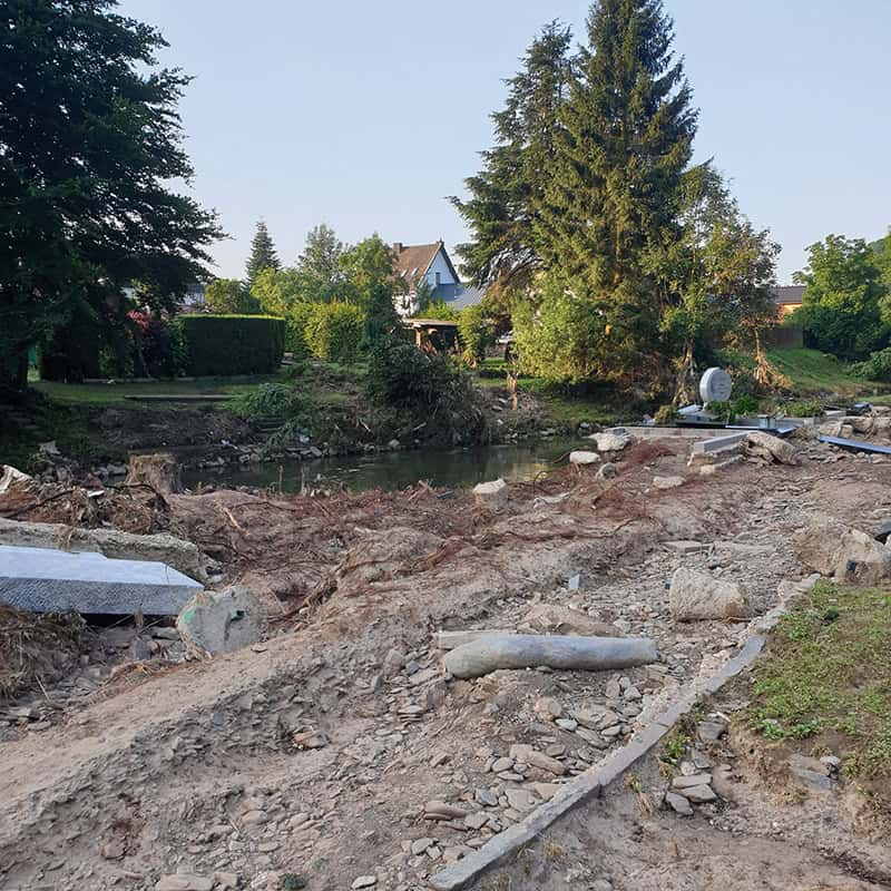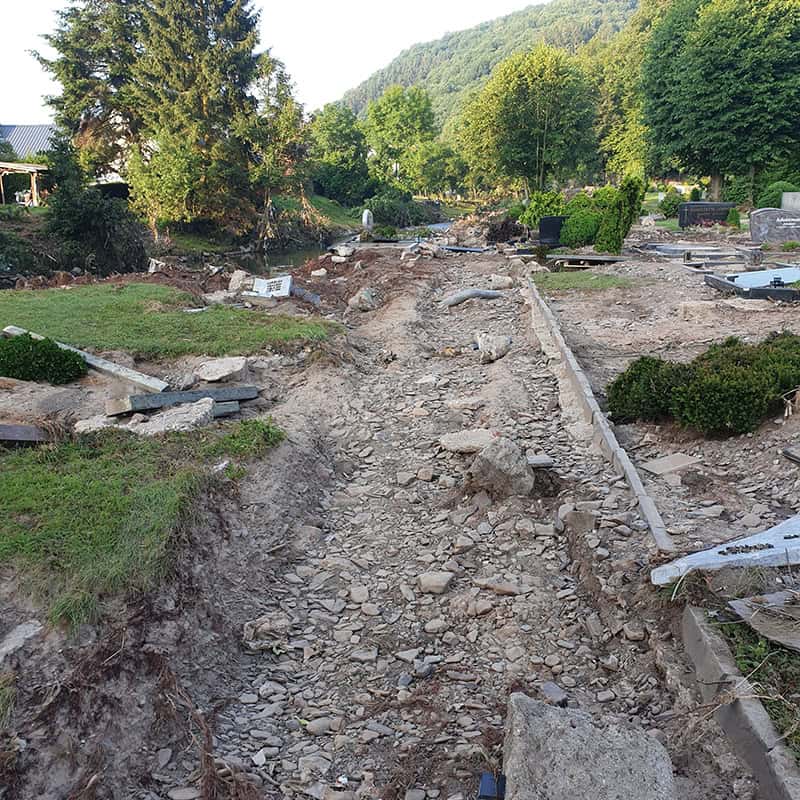 Am 14. Juli 2021 verwandelte der Starkregen auch das kleine Flüsschen Olef in der Eifel zu einem zerstörerischen Monstrum, das in die Stadt Schleiden und hier ganz besonders in den Stadtteil Gemünd einfiel. Unter anderem wurde der dortige Friedhof verwüstet, ganze Gräber weggeschwemmt.