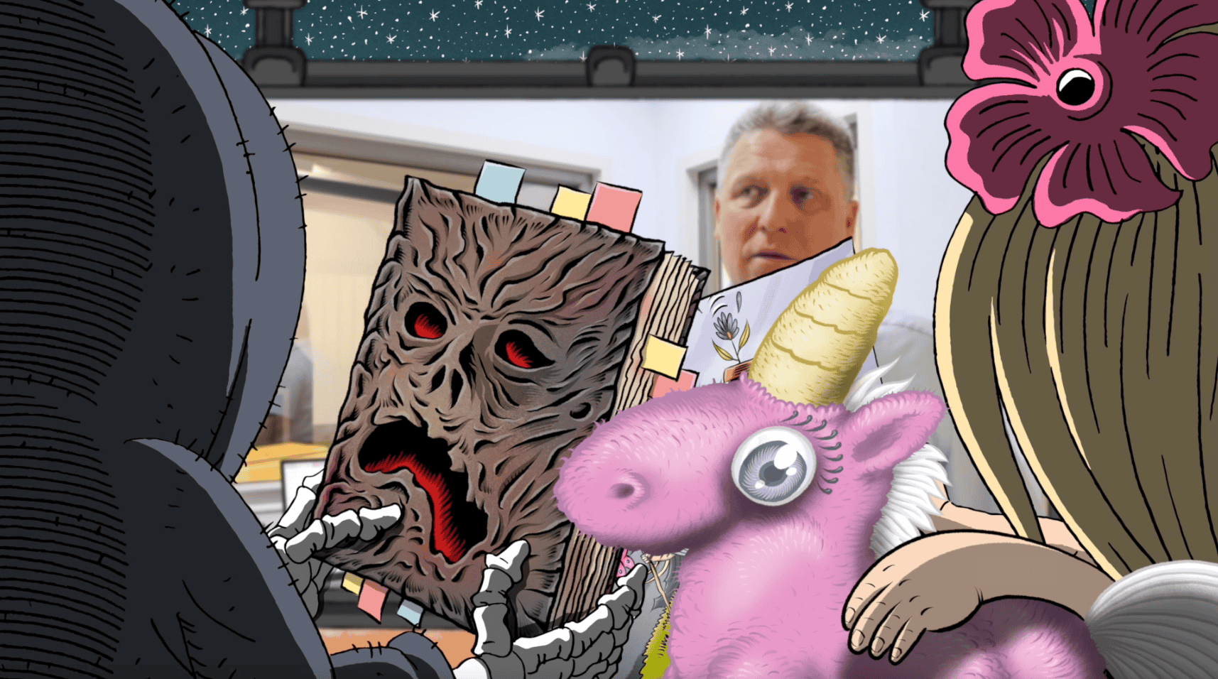 Illustrationen: Schwarwel, Filmstills: FUNUS Stiftung/Glücklicher Montag