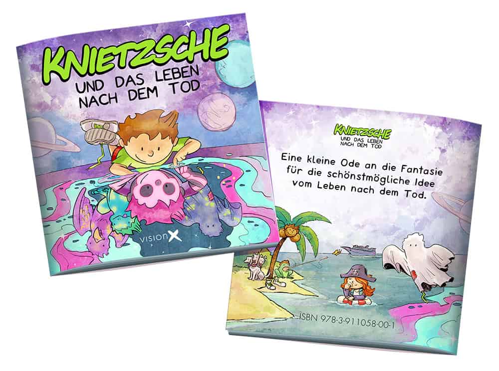 Was wissenschaftlich nicht nachzuweisen ist, muss man mit Fantasie und Glauben kompensieren. Ein Glück hat Knietzsche die Fantasie schon in der Wiege mitbekommen. Mit dem Minibuch „Knietzsche und das Leben nach dem Tod“ schenkt der beliebte Zeichentrick-Philosoph kleinen und großen Leserinnen und Lesern Ideen für „das größte Geheimnis im ganzen Universum.“