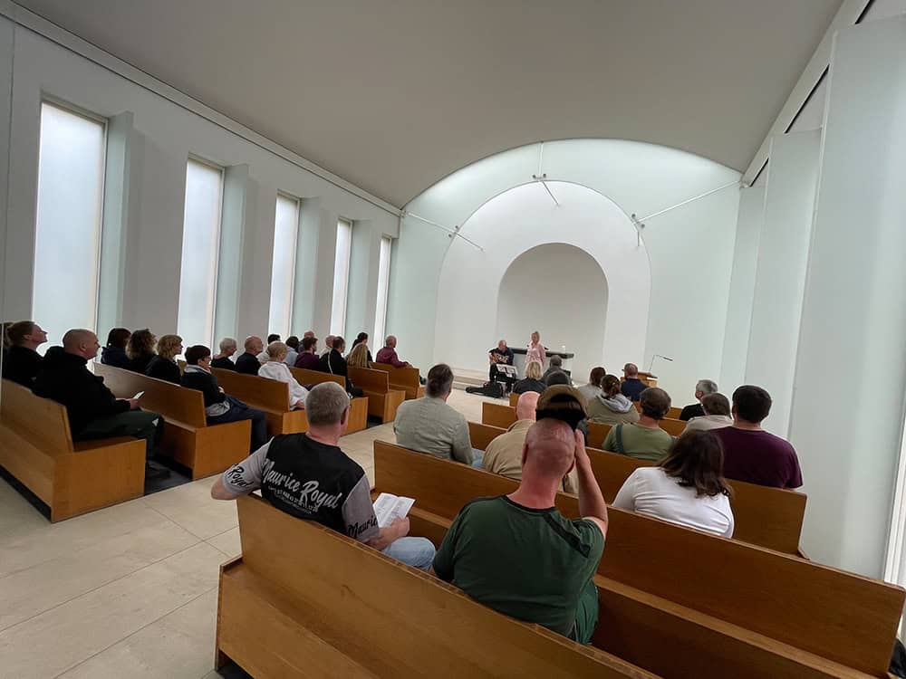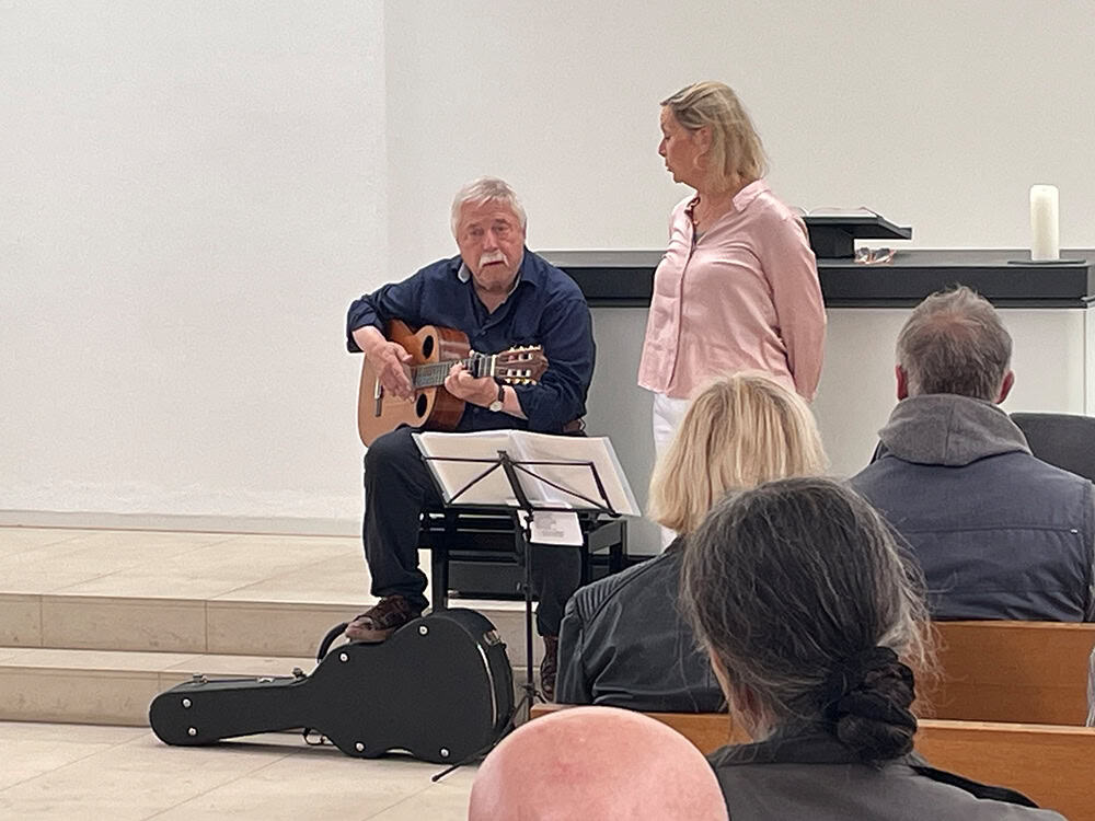 Als Ort wurde die von James Turell gestaltete Kapelle auf dem Dorotheenstädtischen Friedhof ausgesucht und Anfang September 2025 gab der Liedermacher dort tatsächlich vor rund 50 Friedhofsbeschäftigten ein kostenloses Konzert. „Ihr seid ja meine zukünftigen Pfleger, deshalb habt ihr das verdient“, scherzte er und stellte sich nach dem zweistündigen Auftritt mit seiner Frau Pamela an der Seite noch neugierigen Fragen. Friedhöfe wie der „Doro“ fußläufig zu seiner alten Ost-Berliner Wohnung gelegen, so erläuterte er, seien sein täglicher Rückzugsort gewesen, auch um zu sinnieren und zu texten, wie sein 1969 verfasstes Lied „Der Hugenottenfriedhof“ mit dem einprägsamen Refrain: „Wie nah sind uns manche Tote, doch / Wie tot sind uns manche, die leben“. Oder aus „Gräber“: „Ich weiß es, die Toten leben / Und wolln, dass sie einer besucht / Wer kalt an den Kalten vorbeigeht / Der wird verhext und verflucht / – ich nicht! – meines Vaters Grabstein / Steht überall. Ich brauch / Sein Grab nicht lange suchen / Es ist so leicht zu finden / Dort, wo ein Schornstein raucht.“ Der Vater Wolf Biermanns, Dagobert, war KPD-Mitglied und wurde als jüdischer Häftling in das Konzentrationslager Auschwitz deportiert und dort am 22. Februar 1943 ermordet.