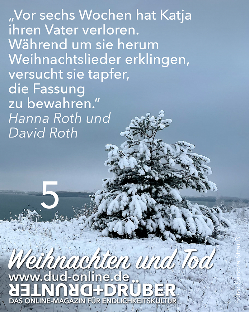 Vor sechs Wochen hat Katja ihren Vater verloren. Während um sie herum Weihnachtslieder erklingen, versucht sie tapfer, die Fassung zu bewahren. Doch die fröhliche Stimmung rührt an etwas, das kaum auszuhalten ist. Der Gedanke an den bevorstehenden Heiligen Abend macht ihr Angst.