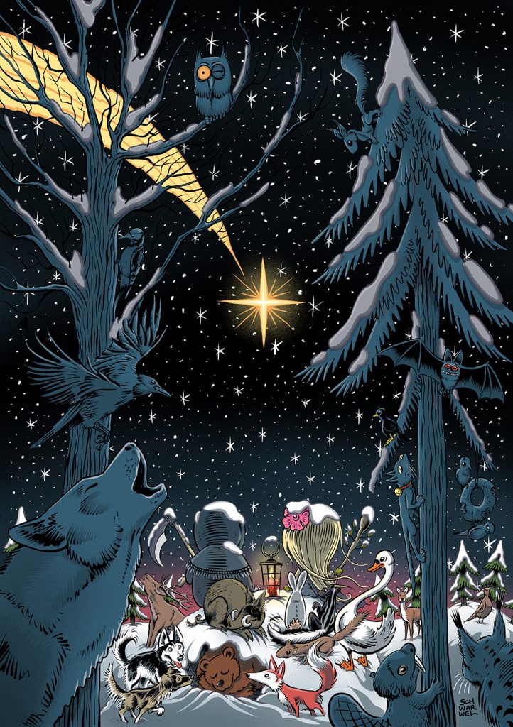 „WEIHNACHTEN UND TOD” 24: Herr Tod und Frau Leben im Winterwald 24. Dezember 2025 0 min read Illustration von Schwarwel